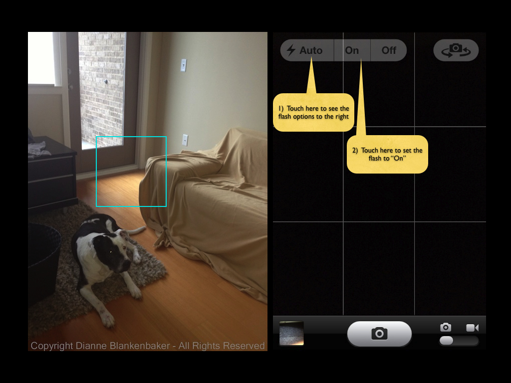 Now let’s pretend there is something really fascinating about that patio door and I want a picture that exposes the patio door correctly, but also includes my dog. If I tap on the patio door to get the right exposure for it, this is what I get: