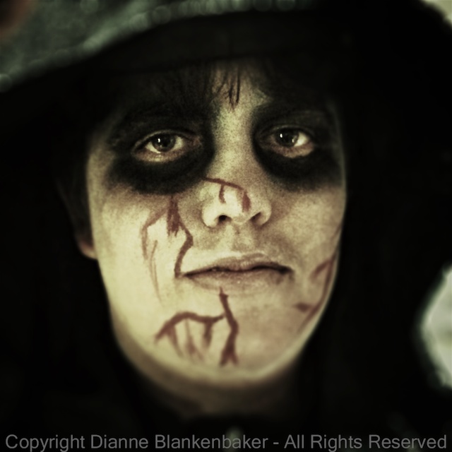 The original photo taken with my iPhone 5S presents several challenges.  First, it was taken with lots of distracting background.  Second, it’s so bright, it destroys the Halloween mood.